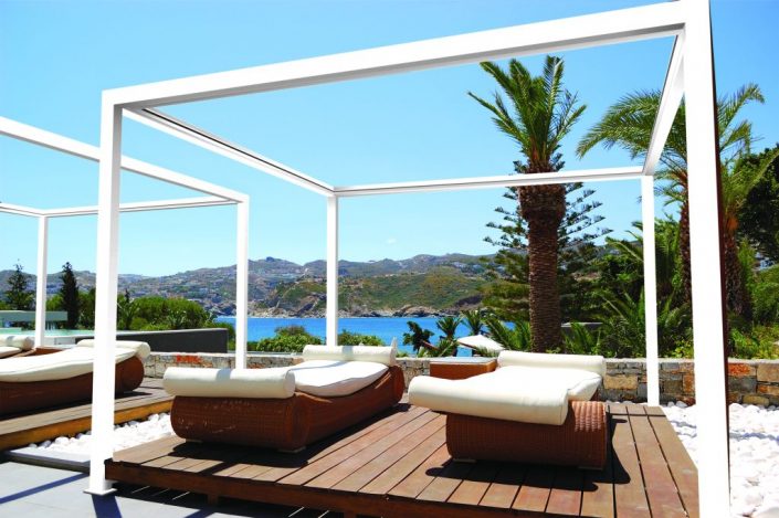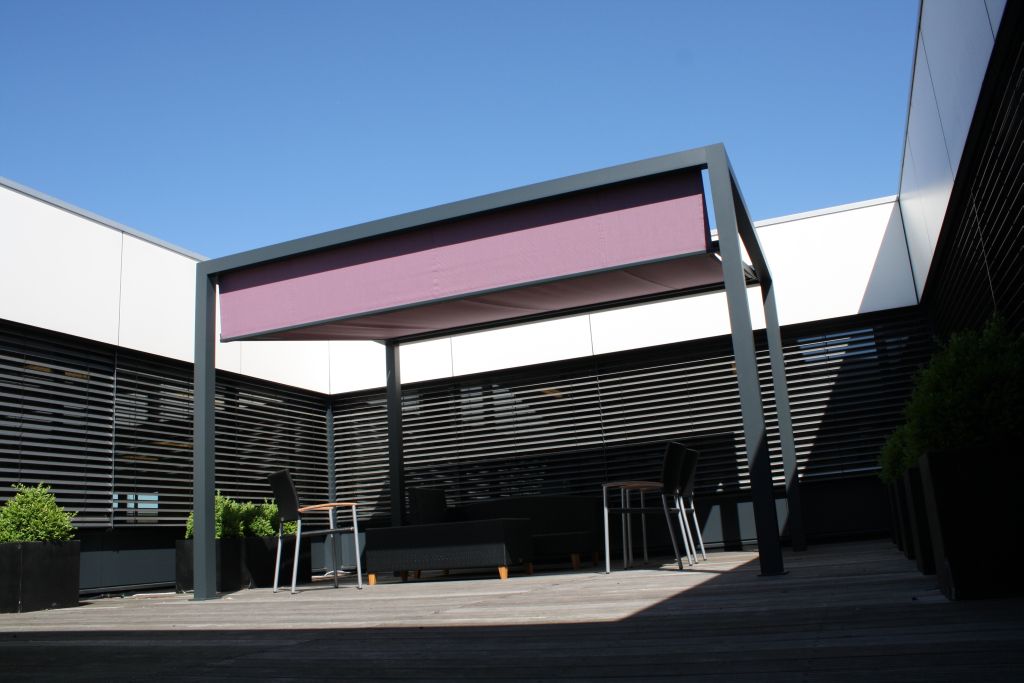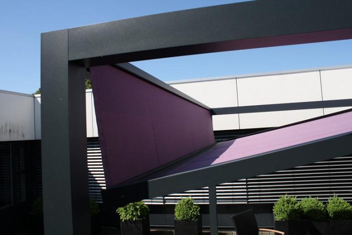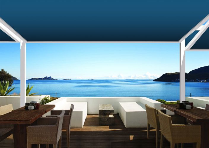 Een voorbeeld van een terrasoverkapping die we leveren is de SunCover. De SunCover is uniek door de combinatie van design en functionaliteit. Naast de traditionele zonwering, die “onder een hoek” geplaatst wordt, is de SunCover ook te gebruiken als “vlakke en strakke” zonwering. Het speciaal ontwikkelde en gepatenteerde systeem maakt een variabele hoekverstelling mogelijk en zorgt bij een lichte regenbui voor een afwatering van het regenwater.